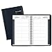 Manage a busy schedule with this daily appointment book/planner. Covers 12 months from January - December, perfect for keeping track of important deadlines, special events and more. One page per day is displayed with past, current and 2 months future reference. With spaces to plan your day within 15-minute intervals from 7:00 a.M. To 7:45 p.M. This daily planner is sure to help you stay organized. Wire bound daily planner contains paper with at least 30% post-consumer material and a navy, flexible simulated leather cover to ensure durability wherever you go. Premium paper resists ink bleed. 4.88 in. X 8 in. Pages. 5 5/8 in. X 8 5/16 in. X.88 in. Overall size.
