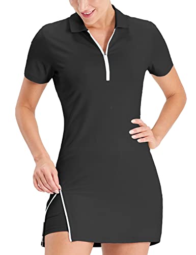 Hiverlay Tennis Golf Dresses for Women Athletic Dress with Inner Shorts 2 Pockets for Exercise Workout UPF 50+ Black l