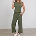 Aniywn Green Two Piece Outfits For Women Summer Casual Travel Outfits Cap Sleeve Tops Wide Leg Crop Pants Fashion Lounge Sets