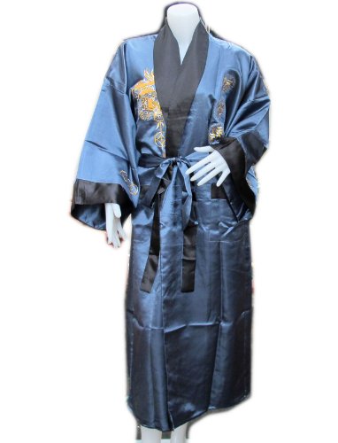 Shanghai ToneĀ® Dragon Bathrobe Bedgown Robe Navy Blue One Size