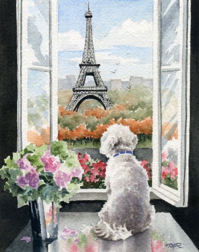 "Bichon Frise At The Beach" Art Print Signed by Artist DJ Rogers