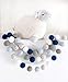 "Classic Navy" Handmade Felt Ball Garland by Sheep Farm Felt- Navy, Powder Blue, Ivory, Light Gray, Warm Gray Pom Pom Garland. 28 felt balls on 7 ft. string
