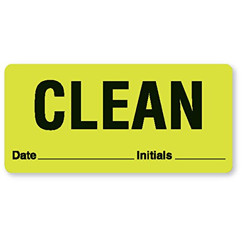 Dunzoom 2 Rolls 480 Sheets Clean Labels 4 x 2 Inch Fluorescent Green Labels Rectangular Cleaning Identification Stickers Writable Self-Adhesive Suitable for Hotels, Laboratories, Hospitals, Schools