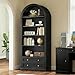 RALGEND Farmhouse Arched Bookshelf Set of2, 7 Tiers Arch Bookcase with 2 Spacious Drawers, Modern Book Shelf with Open Display Shelves and Storage Cabinet, for Office, Living Room, Kitchen, Black