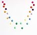 7 feet in length with 28 felt balls. 100% Wool Felt Balls are 2.5 cm (1 inch) in diameter. Handmade garland is a single strand with no knots. Space between balls can be adjusted with a gentle tug. Colors: Red, Hot Pink, Pumpkin, Orange, Mustard, Yellow, Lilac, Spring Green, Kelly Green, Teal, Sky Blue, Lilac, Purple. 9 ft garland shown. **Length listed is when balls are spaced 3 inches apart on string.