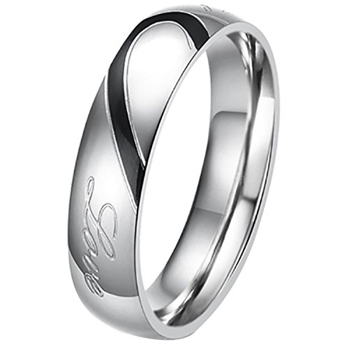 TIGRADE Jewelry Heart Shape "Real Love" Couples Matching Stainless Steel Ring Women 4mm (7)