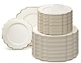 " OCCASIONS " 240 Plates Pack (120 Guests) Heavyweight Wedding Party Disposable Plastic Plates Set -120 x 10.5'' Dinner + 120 x 8'' Salad/Dessert Plate (Imperial Ivory & Gold)