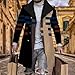 Zhyaj Men's Casual Long Trench Coat Fashion Plaid Splicing Button Down Mid Length Peacoat Fall Winter Warm Jacket Overcoat